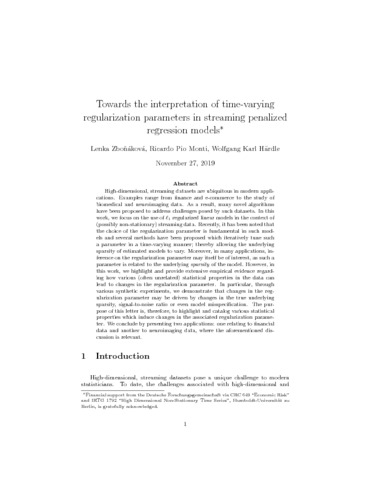 Title: | Towards the interpretation of time-varying regularization parameters in streaming penalized regression models |