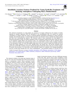 | Title: | Identifiable Acetylene Features Predicted for Young Earth-like Exoplanets with Reducing Atmospheres Undergoing Heavy Bombardment |
