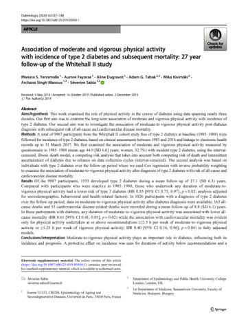 Association of moderate and vigorous physical activity with incidence of type 2 diabetes and subsequent mortality: 27 year follow-up of the Whitehall II study.