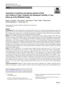 | Title: | Association of moderate and vigorous physical activity with incidence of type 2 diabetes and subsequent mortality: 27 year follow-up of the Whitehall II study |