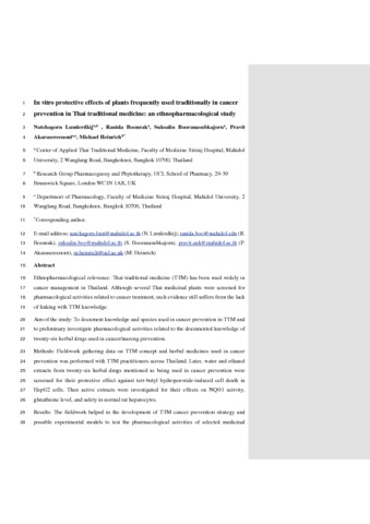 Title: | In vitro protective effects of plants frequently used traditionally in cancer prevention in Thai traditional medicine: An ethnopharmacological study |
