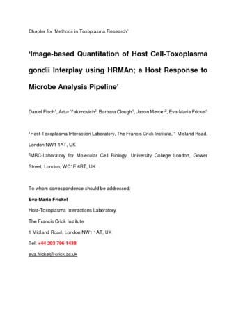 Title: | Image-Based Quantitation of Host Cell-Toxoplasma gondii Interplay Using HRMAn: A Host Response to Microbe Analysis Pipeline |