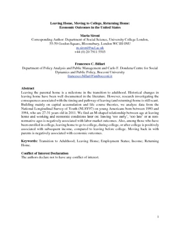 Title: | Leaving home, moving to college, and returning home: Economic outcomes in the United States |