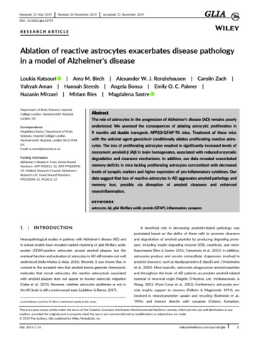 Title: | Ablation of reactive astrocytes exacerbates disease pathology in a model of Alzheimer's disease |