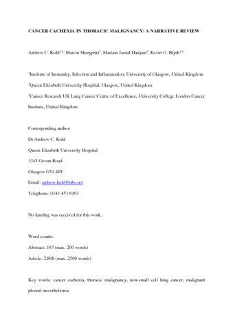 Title: | Cancer cachexia in thoracic malignancy: a narrative review |