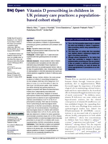 | Title: | Vitamin D prescribing in children in UK primary care practices: a population-based cohort study |