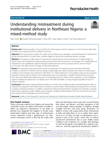 Understanding mistreatment during institutional delivery in Northeast Nigeria: a mixed-method study.