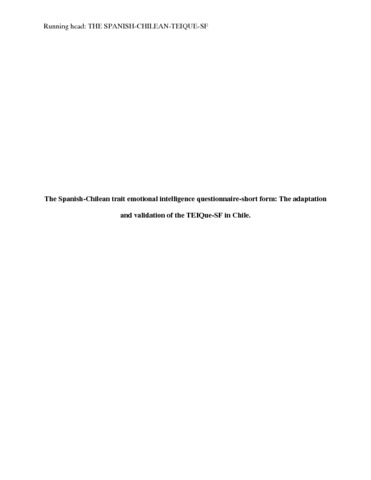 Petrides The adaptation and validation of the trait emotional intelligence questionnaire-short form in Chile.The Spanish-Chilean-TEIQue-SF.-sv - all documents - all .pdf - Accepted Version Download (1MB) | Preview |
