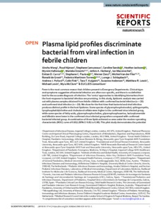 Title: | Plasma lipid profiles discriminate bacterial from viral infection in febrile children |
