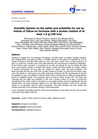 Title: | Scientific Opinion on the safety and suitability for use by infants of follow-on formulae with a protein content of at least 1.6 g/100 kcal |
