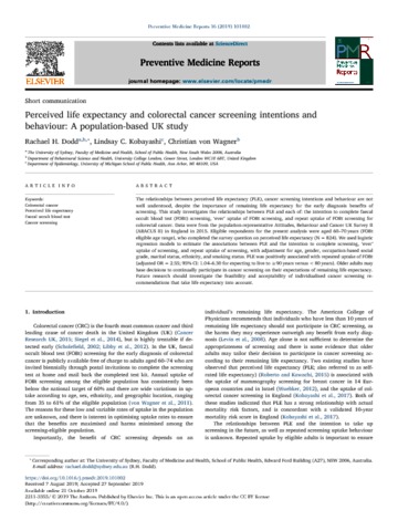 Perceived life expectancy and colorectal cancer screening intentions and behaviour A population-based UK study.pdf - Published Version Download (177kB) | Preview |