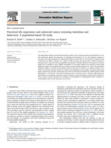 Title: | Perceived life expectancy and colorectal cancer screening intentions and behaviour: A population-based UK study |
