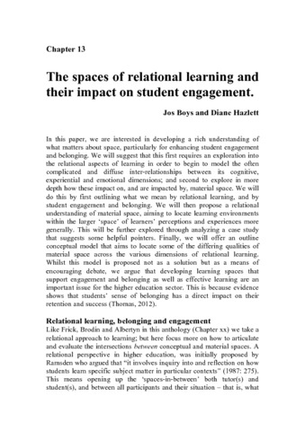 In this paper, we are interested in developing a rich understanding of what matters about space, particularly for enhancing student engagement and belonging. We will suggest that this first requires an exploration into the relational aspects of learning in order to begin to model the often complicated and diffuse inter-relationships between its cognitive, experiential and emotional dimensions; and second to explore in more depth how these impact on, and are impacted by, material space. We will do this by first outlining what we mean by relational learning, and by student engagement and belonging. We will then propose a relational understanding of material space, aiming to locate learning environments within the larger ‘space’ of learners’ perceptions and experiences more generally. This will be further explored through analyzing a case study that suggests some helpful pointers. Finally, we will offer an outline conceptual model that aims to locate some of the differing qualities of material space across the various dimensions of relational learning. Whilst this model is proposed not as a solution but as a means of encouraging debate, we argue that developing learning spaces that support engagement and belonging as well as effective learning are an important issue for the higher education sector. This is because evidence shows that students’ sense of belonging has a direct impact on their retention and success (Thomas, 2012).