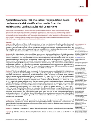Application of non-HDL cholesterol for population-based cardiovascular risk stratification: results from the Multinational Cardiovascular Risk Consortium.