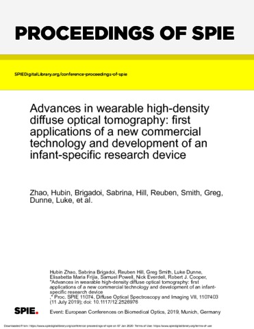 Advances in wearable high-density diffuse optical tomography: first applications of a new commercial technology and development of an infant-specific research device.