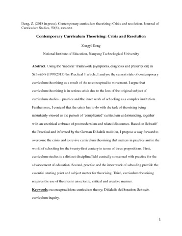 Deng_2018 Curriculum theorizing JCS final.pdf - Accepted Version Download (1MB) | Preview |