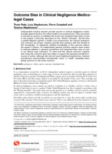 Additional information: | This article was first published by Thomson Reuters in the Journal of Law and Medicine and should be cited as Petty, T; Stephenson, L; Campbell, P; Stephenson, T; (2019) Outcome Bias in Clinical Negligence Medico-legal Cases. Journal of Law and Medicine, 26 (4) pp. 825-830. // This publication is copyright. Other than for the purposes of and subject to the conditions prescribed under the Copyright Act 1968 (Cth), no part of it may in any form or by any means (electronic, mechanical, microcopying, photocopying, recording or otherwise) be reproduced, stored in a retrieval system or transmitted without prior written permission. Enquiries should be addressed to Thomson Reuters (Professional) Australia Limited. PO Box 3502, Rozelle NSW 2039. legal.thomsonreuters.com.au. |