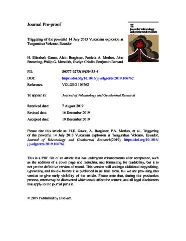 Title: | Triggering of the powerful 14 July 2013 Vulcanian explosion at Tungurahua Volcano, Ecuador |