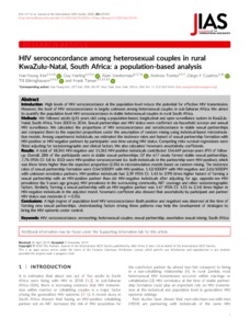 HIV seroconcordance among heterosexual couples in rural KwaZulu-Natal, South Africa a population-based analysis.pdf - Published Version Download (353kB) | Preview |