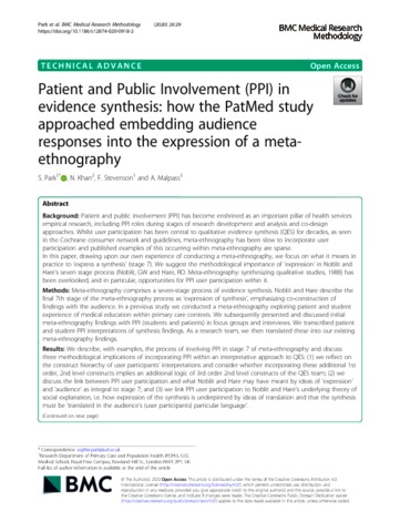 Patient and Public Involvement (PPI) in evidence synthesis: how the PatMed study approached embedding audience responses into the expression of a meta-ethnography.