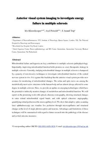 | Title: | Anterior visual system imaging to investigate energy failure in multiple sclerosis |