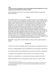 Title: | At the intersection of idealized youth and marginalized almost-adulthood: how girls negotiate young motherhood in London, Ontario |