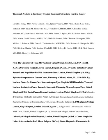 Forster_Tisotumab Vedotin in Previously Treated Recurrent or Metastatic Cervical Cancer_AAM.pdf - Accepted Version Download (1MB) | Preview |