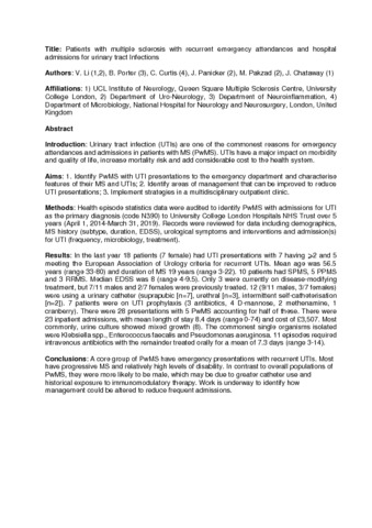 Title: | P424 Patients with multiple sclerosis with recurrent emergency attendances and hospital admissions for urinary tract infections |