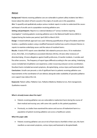 Title: | Patient safety in palliative care: A mixed-methods study of reports to a national database of serious incidents |