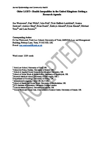 Older LGBT+ health inequalities in the UK: setting a research agenda.