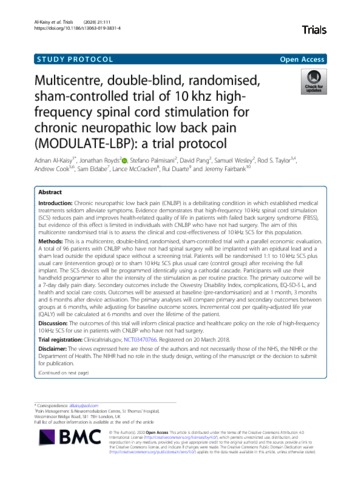 Multicentre, double-blind, randomised, sham-controlled trial of 10 khz high-frequency spinal cord stimulation for chronic neuropathic low back pain (MODULATE-LBP): a trial protocol.