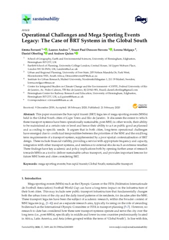 | Keywords: | mega sporting events; bus rapid transit; Global South; sustainable transport |