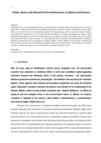 Title: | Bribes, Rents and Industrial Firm Performance in Albania and Kosovo |