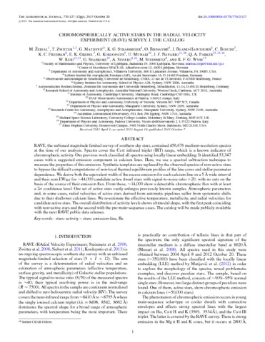 | Title: | CHROMOSPHERICALLY ACTIVE STARS IN THE RADIAL VELOCITY EXPERIMENT (RAVE) SURVEY.I. THE CATALOG |