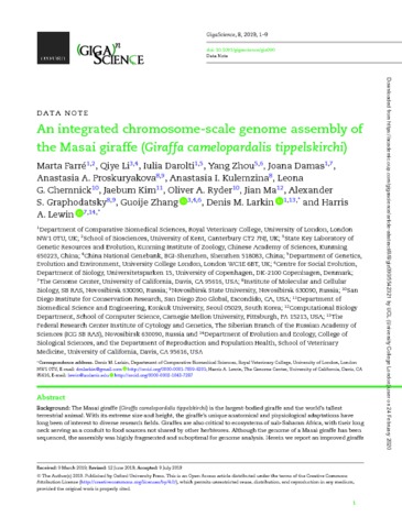 Title: | An integrated chromosome-scale genome assembly of the Masai giraffe (Giraffa camelopardalis tippelskirchi) |