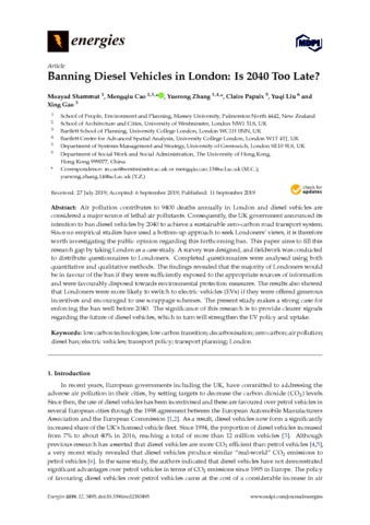 Title: | Banning Diesel Vehicles in London: Is 2040 Too Late? |