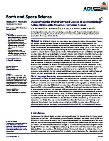 Title: | Quantifying the probability and causes of the surprisingly active 2018 North Atlantic hurricane season |
