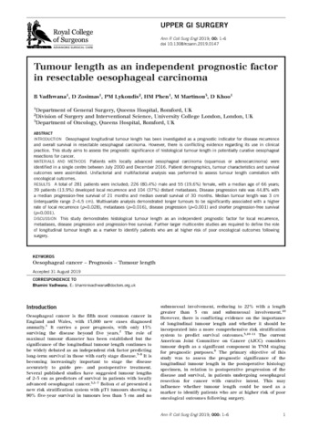 Title: | Tumour length as an independent prognostic factor in resectable oesophageal carcinoma |