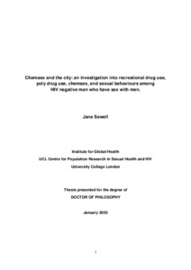 Title: | Chemsex and the city: an investigation into recreational drug use, poly drug use, chemsex and sexual behaviours among HIV negative men who have sex with men |