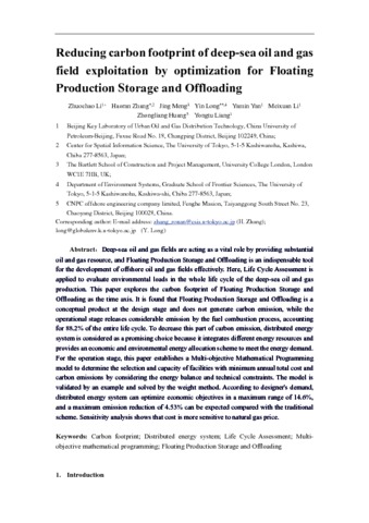 Title: | Reducing carbon footprint of deep-sea oil and gas field exploitation by optimization for Floating Production Storage and Offloading |