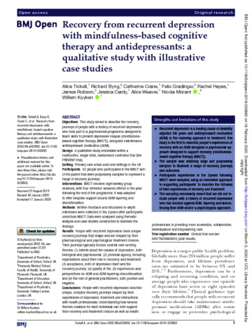 | Title: | Recovery from recurrent depression with mindfulness-based cognitive therapy and antidepressants: a qualitative study with illustrative case studies |