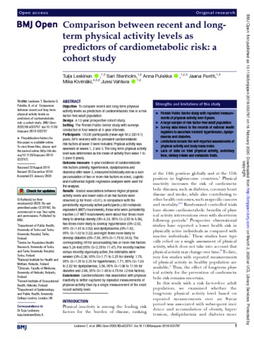 Title: | Comparison between recent and long-term physical activity levels as predictors of cardiometabolic risk: a cohort study |
