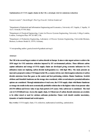 Title: | Optimization of CCUS supply chains in the UK: A strategic role for emissions reduction |