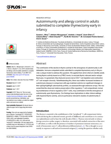 | Title: | Autoimmunity and allergy control in adults submitted to complete thymectomy early in infancy |