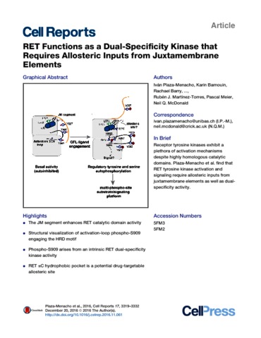 RET Functions as a Dual-Specificity Kinase that Requires Allosteric Inputs from Juxtamembrane Elements.pdf - Published Version Download (4MB) | Preview |