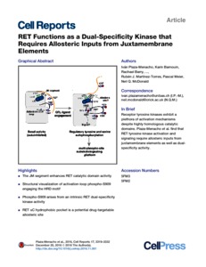Title: | RET Functions as a Dual-Specificity Kinase that Requires Allosteric Inputs from Juxtamembrane Elements |