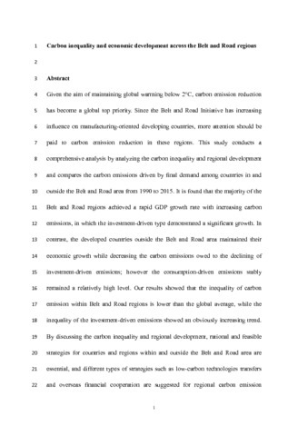 Title: | Carbon inequality and economic development across the Belt and Road regions |