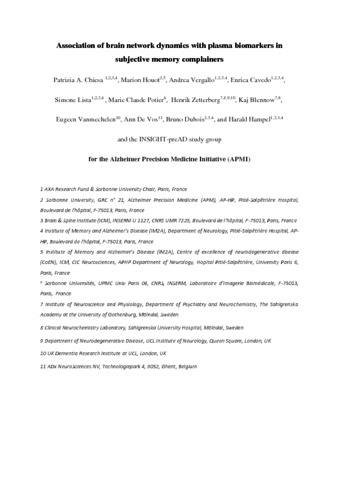 Title: | Association of brain network dynamics with plasma biomarkers in subjective memory complainers |