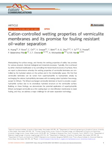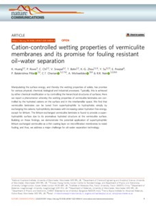 Title: | Cation-controlled wetting properties of vermiculite membranes and its promise for fouling resistant oil–water separation |