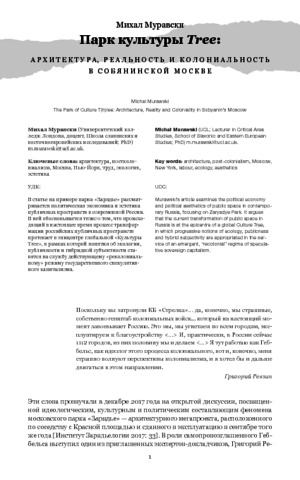 Title: | Парк культуры Tree: архитектура, реальность и колониальность в собянинской Москве |